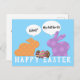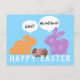 Zwei farbenfrohe Osterbüscheln, die sich über ihre Körperteile beschweren und auf denen sie geblendet wurden, sind die Kulissen für diese niedliche und lustige Grußkarte zu Ostern. Senden Sie diese Postkarte an Ihre Freunde und Familie für den Osterurlaub. Fügen Sie Ihren Namen auf der Rückseite der Postkarte hinzu und Sie sind gut zu gehen. Sie können auch die persönliche Nachricht ändern oder so verlassen werden, wie sie ist.