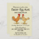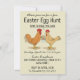 Funny Oaster Egg Hunt Einladung mit einem Cartoon einer Mutter Henne Sprichwort zu ihrem Hahn Ehemann: "Zeit, die Kinder zu verbergen." Weil es Ostern ist und sie die ungeborenen Küken für eine Ostereierjagd dekoriert hat. Bereit, mit Ihrem eigenen Text personalisiert zu sein. Spaß und Niedlich braune Hühnchen Ostereier Cartoon Zeichnend Art Design. Zeichn durch Irony Designs. Alle Rechte vorbehalten.