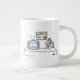 Funny Orthopädie RN oder Orthopädie Chirurgen Cartoon Art Giant Coffee Tasse zeigt niedlich zeichn des Arztes, der seine Lieblings-TV-Show an seinem Büro. Der Toon auf beiden Seiten, aber Sie können leicht einen der Tonnen ersetzen und durch Text wie Weihnachtsgrüße oder eine Glückwunschnachricht, wenn gewünscht