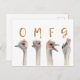Dies ist ein Aquarellbild von Straußen mit sich verändernden Emotionen von der Ruhe zu einer Kernschmelze. Auf jedem Strauß sind Buchstaben, die "OMFG" in Imitaten mit Goldfolie beschreiben.