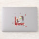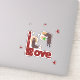 Aufkleber mit lustigem Paar mit Blume und Text-LIEBE