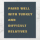 Das Sprichwort "Paare gut mit Truthühnern und schwierigen Verwandten" mit dem Namen "Funny wine Label"
