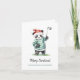 Funny Panda spielt Golf Weihnachts Grußkarte. Schönes Aquarell zeichnend von einem niedlichen weißen Panda Bär in der Weihnachtsmannmütze Golf spielen. Personalisierter Text.