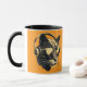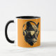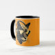 A cute funny cat mug featuring a panther wearing gold headphones and sunglasses.