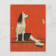 Alle Rechte vorbehalten © Angelandspot ein lustiger Teil Hund Teil Mensch posiert für ein Portrait mit einem schwarzen Mini-Rock und weiße Tennisschuhe mit rotem Hintergrund