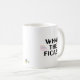 In dieser Tasse heißt es: "Was die FICA!" in fett gedruckten, schwarzen Buchstaben, in einem humorvollen Verweis auf das Akronym für bundesstaatliche Lohnsteuern.