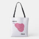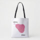 Playful and punny: a bright pink pear with speckled seeds and the cheeky caption “From: Pear.” The bold pop-art look stands out on natural canvas.