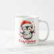 Diese moderne Tasse aus Weiß und Rot besticht durch das Sprichwort "Frohe Weihnachten" und die Vorlage für den Familiennamen, die mit einem niedlichen Pinguin in roter Weihnachtsmannmütze mit Weihnachtsbeleuchtung geschmückt ist.