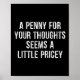 Funny, Penny For Your Thoughts Raglan Baseball Tee Poster