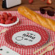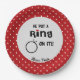 Funny Personalisiert Er legte einen Ring auf es Party Teller mit einem roten Herz und rote Punkte, und eine Hochzeit Verlobung Ring mit Braut zu sein.