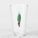 Dieser Glaskrüber für Getränke hat einen lustigen Mann in einem braunen Anzug mit einem großen grünen Haufen für einen Kopf mit einem überraschend aussehenden Gesicht auf der Vorder- und Rückseite.