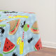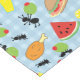 Die Cartoon-Picknickspeisen wie Sandwiches, gebratene Hühnertromsticks, Wassermelone in Scheiben geschnitten, Limonade und natürlich Ameisen! Alles auf einem blauen Gingham Muster picknicken Decke Hintergrund. Dieses humorvolle Design ist niedlich für Sommerpicknicks oder für eine Touch Launen in Ihrer Zuhause.
