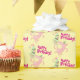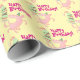 A happy pig on birthday wrapping paper. Use "Personalize this template" to tweak the "Happy Birthday!" text and create a unique, customized message. Paper featuring a gleeful pig, beneath a teetering layer cake with lashings of green icing and topped with pink candles.