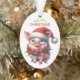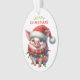 Dies ist ein niedliches Weihnachtsschmuck für Eltern oder Großeltern, um einem Kind zu geben, aber es kann leicht als Geschenk für jedermann angepasst werden. Die Vorderseite des Ornaments hat ein Bild eines lustigen Cartoon Schwein mit Brille, Weihnachtsmannmütze und Schal. Er ist in eine Reihe farbenfroher Urlaubsleuchten eingewickelt. Im grünen und roten Text steht "MERRY CHRISTMAS". Auf der Rückseite des Ornaments befindet sich Ihr eigener Text, der durch einen kleinen Bonbons und ein heiliges Bouquet getrennt ist. Ändern Sie den Text einfach zu allem, was Sie wollen!