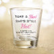 Funny pink und schwarz "Take a Shot She's Still Hot" 30. Geburtstag Party Glas gedreht. Geben Sie ihren Namen, das Alter und das Party ein.