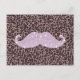 Funny Pink Bling Mustache und Animal Print Muster Postkarte