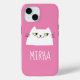 Einfaches, niedliches, Cartoon weißes Katzenportrait mädchenhaft, rosa iPhone Gehäuse mit individuelle Name.