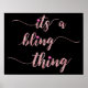 Dieses lustige gürtelhafte Poster wurde für jeden entworfen, der Glitz und Glanz Lieben hat und mit Sprichwort Sein A Bling Ding mit rosa Glitzer und rosa Nashornsteinen entworfen wurde, die in die Worte entworfen wurden. Das ist ein tolles Plakat oder Geschenk für ein Teenagerzimmer.
