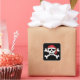 Feiner Cartoon-Schädel mit vermissten Zähnen mit rotem Bandana, Augenpflaster und goldenem Ohrring und Kreuzknochen.