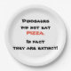 Der sonnige Teller mit dem Satz "Dinosaurier haben keine Pizza gegessen. Tatsächlich sind sie ausgestorben.