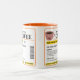 komische Kaffeemaschine, die wie eine verschreibungspflichtige Tasse aussieht, die so gestaltet ist, dass sie einer verschreibungspflichtigen Flasche ähnelt. Unser niedliches Etikett