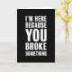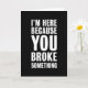 Dies ist das ideale Geschenk für Entwickler mit einem Sinn für Spaß. "Ich bin hier, weil Sie etwas kaputt gemacht haben" wird oben als lustiger Teil des Lebens von IT Support-Mitarbeitern oder Software-Entwicklern erklärt