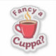 Celebrate your love for tea with this charming Fancy a Cuppa sticker. Featuring popular British slang, this aesthetic tea lover decal is perfect for personalizing your water bottle, laptop, or tea journal. Crafted from high-quality waterproof vinyl, this durable sticker is ideal for fans of afternoon tea and English culture. Whether you are a fan of London vibes or just love a cozy brew, this cute tea sticker makes a wonderful small gift or a sweet addition to your own stationery collection.