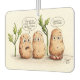 Funny Pun über Kartoffeln. Ein zeichn von drei Kartoffeln. Der erste frag: Warum nennen wir Kartoffeln? Wir haben keine Zehen. Die dritte hat große Füße mit großen Zehen und sagt: Sprich für dich. Der grüne Hintergrund wird angezeigt. Vergnügen und Niedliche braune Kartoffeln, die im Garten hängen. Cartoon Zeichne Kunstdesign. Zeichn von Donna Léger von Irony Designs. Alle Rechte vorbehalten.