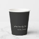 Add a touch of humor to your gathering with these funny personalized paper cups in black featuring the cheeky phrase "please leave by 9 PM" and customizable family or host name below. The minimalist design makes these perfect for casual dinner parties, housewarming events, or any get-together where a little wit is welcome. Both practical and entertaining, these are sure to make your guests smile. A fun and stylish addition to your table setting or a unique host gift idea!