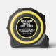 Funny Quote Maßnahme zweimal geschnitten einmal Tape Maßnahme. Weißer, lustiger Text auf schwarz-gelb Hintergrund. Großartig als lustiges Geschenk für einen Mann oder eine Frau.