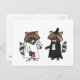 Funny Raccoon Bridge and Groom Wedding Art Postkarte
