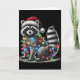 Funny Raccoon Santa Hat Christmas Tree Lights Paja Karte