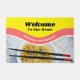 Herzlich willkommen an Ihrem Platz mit einem Lächeln mit dieser lustigen Tür, die das Aussehen eines Ramen-Nudelpakets hat und bereit ist, mit Ihrem eigenen Text personalisiert zu sein. Fügen Sie Ihre eigene Willkommensnachricht oder humorvolles Sprichwort und Ihre Namen hinzu. Das Parody-Nudelpaket hat ein Bild einer Schüssel Nudeln mit hellen roten und gelben Akzenten.