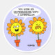 Die lustige Raupe Mustache Cartoon Classic Round Sticker zeigt niedliche Blume und ihren Mann oder Freund in einem kleinen orangefarbenen Blumentopf vor Lavendel oder lila Hintergrund. Weibliche sagt stolzen Männern, die Raupe unter seiner "Nase" krabbeln lässt, die wie ein Schnurrbart aussieht: "Mit einer Raupe siehst du so ENTFERNT aus!" Niedlicher Aufkleber mit sanftem Mann und Ehefrau, Freund und Freundin oder männlichem und weiblichem Spaß kann auf verschiedene Weise verwendet werden, unter anderem indem man einen Buchstaben unten anbringt oder auf die Klappe eines Briefumschlags, den man an jeden Typ schicken will, der Gesichtshaare, insbesondere einen Schnurrbart, hat. Perfekte Aufkleber für Gärtner, Floristen oder alle, die Blume lieben.