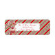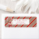 Niedliche Labels für alle Ihre Urlaubssendungen. Goofy, lustiger Rentier mit einem roten Schal, mit roten Ornamenten, die von seinen Geweihen hängen. Der Hintergrund ist ein hübscher, roter, grüner und weißer Streifen. Personalisieren Sie Ihre Daten mit Ihren Daten.