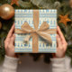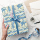 Funny Reindeer Christmas Tree Snow Blue Pattern, Christmas Wrapping Paper