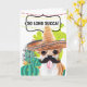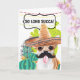 Ein lustiges und auffälliges Design eines Chihuahua-Hundes mit einer Zunge, die einen mexikanischen Sombrero-Hut trägt und einen Schnurrbart sportlich macht, ist Set vor einem Hintergrund, der mit einem großen, stacheligen Kaktusblase und einer Sprachblase mit den Worten gefüllt ist, so lange Succa! Die innere liest, Möge deine Reisen dich zu dem führen, was dein Herz sucht. Gute Reise! Ändern Sie den Wortlaut und die Hintergrundfarbe, um Ihre Anforderungen Anzug.