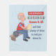 Die Idee des Retiree zu einem lustigen Geschenk ist ein grauhaariger Mann, der auf einer Bank sitzt und das Papier liest. Text sagt Warning, Remüde, weiß alles und hat viel Zeit, um Ihnen davon zu erzählen.