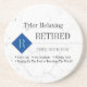 Bist du bald in Rente oder in Rente? Dieses schlichte, weiße Marmor-Design ist ein großartiger Gag-Untersetzer, den man in den Party verwenden kann, um jedem lassen, dass der große Tag gekommen ist. Arbeitet gut für jeden Beruf. Ideal für Innenarchitekten, Berater, Anwälte, Firmenfachleute, Wiederverkäufer, Vertriebsmitarbeiter, Anwesen-Planer und vieles mehr. Passen Sie Ihre Monografie und Ihren Namen an und fügen Sie lustige Informationen hinzu, die Sie sich erträumen können. Farben: Schwarz, Grau, Weiß, Blau und Aquamarin.