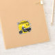 Ruhestandsplan mit komischem Motorrad-Aufkleber mit gelbem Hintergrund.