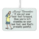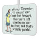 Das originelle, lustige Demotivations-/Fake-inspirierende Zitat dieses Autos-Lufterfrischers sagt: "Vergiss nicht: Wenn du deinen besten Fuß vorwärts stellst, dann bist du stehend auf deinem schlechten Fuß, und das ist wahrscheinlich schmerzhaft." Es zeigt eine Retro-Grafik in den 40er oder 50er Jahren, wie eine Frau den Zeiger eines Lehrers hält und eine Schürze trägt, die einen Fuß hält, während sie auf dem anderen steht. Der Hintergrund ist hellblau. Dies ist ein humorvolles Sprichwort für jeden, der gerne sarkastisch ist und auch gut für einen Podiatristen wäre.