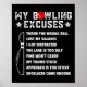 Funny Retro Bowling Excuses For League Night Bowle Poster