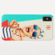 Eine ungeheuerlich lustige Handydose im Retro-Stil mit einer fabelhaften Frau in gestreifter Sonnenbrille, einem Turbinenkopfmantel und Schmuck, die mit ihrem Polka Dot Tote Tasche und gestreiftem Handtuch zum Strand fliegt. Sie ist die totale Verkörperung von Spaß und fabelhaftem Selbstausdruck. Eine Textvorlage für Monogramm ist für Sie enthalten, um mit Ihrem Monogramm zu personalisieren. Die türkisfarbenen und beigen Farbtöne verleihen dem Badeambiente des Sommers eine besondere Note. Dieser Fall ist ein großartiges Geschenk für Ihre fabelhaften Freunde, Brautmädchen, Tanten, Mütter, Schwestern, Cousins, Großmutter und mehr.