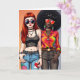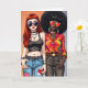 Sage einem Freund mit dieser lustigen, lustigen 70er-Jahre-vibes-Karte Glück zum Geburtstag. Eine kaukasische und afroamerikanische Frau in groovy Kleidung der 1970er Jahre. Adorable Pop Art Comic buchen Stil Freunde in den 1970er Jahren.