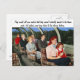 Diese Postkarte zeigt ein Retro-Bild von Menschen, die mit einem Zug fahren, mit einem humorvollen, anpassbaren Zitat, das lautet: "Sie alle würden bald erkennen, dass sie nicht wirklich zum Themenpark gegangen sind, sondern stattdessen in die Klonfabrik mitgenommen wurden."