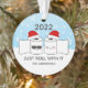 Ein lustiges und festliches Urlaubssornament mit Toilettenpapier-Rollen mit Weihnachtsmannmützen-Sprichwort "Just Roll With It". Ein leichtes Lachen über den Mangel an Toilettenpapier während der COVID Quarantäne und 2020 Veranstaltungen. Personalisieren Sie den Text und fügen Sie dem Ornament Ihre Namen hinzu.