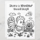 Niedliche Erwachsenenfärbungsseite für Kinder, Jugendliche oder Erwachsene, einfache, dicke Linien, um die Färbung zu erleichtern. Ein niedlicher Hahn auf einem Bauernhof und ein lustiges Huhn-Pun-Zitat: "Habe einen guten Tag".