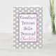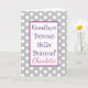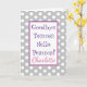 Eine lustige Ruhestandkarte mit einem Polka Dot Design auf einem hellgrauen (silberfarbenen) Hintergrund mit einem großen Textkasten mit lila und rosa Grenze mit einem lustigen Ruhestandskommentar "Auf Wiedersehen, Hallo Pension". Eine schöne humorvolle Karte für Familie und Freunde, die in Rente gehen. Alle Text kann geändert werden, um die Karte anzupassen, dann personalisieren durch Änderung des Namens und der Nachricht, in der derzeit "Wünscht Ihnen eine lange und Gesundheit Pensionierung! " Die Farben können auch geändert werden, wenn erforderlich, gehen Sie einfach auf die Personalisierung es weiter Schaltfläche.