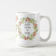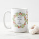 Hübsche, unscheinbare Tasse mit Blumenmuster und Blume, die in Kränze mit einem Bouquet in der Mitte angeordnet sind, in dem sich ein Schmetterling und ein winziger Ladybug befinden. Ein unerwartetes, komisches Zitat direkt in der Mitte macht diesen Spaß, aber Sie können das Zitat auch in einen anderen kurzen Satz Ihrer Wahl ändern, wenn Sie es wünschen.