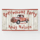 Fügen Sie dieses Funny Rustic Retirement Party Banner zu Ihrem nächsten Event hinzu. Kann innen oder außen verwendet werden. Entworfen mit einem alten roten, roten LKW auf einem rustikalen, hölzernen Hintergrund. Zum Personalisieren geben Sie einfach den Namen des Rentners in unsere Vorlage ein.